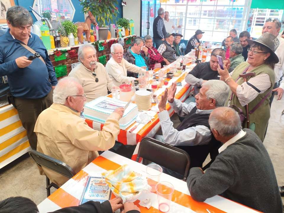 Dentro de la convivencia amistosa, se llevó a cabo, el festejo de sus 79 años del distinguido y apreciado Máximo Castellanos, partió su pastel tres leches escoltado por el anfitrión Juan Ávila el (Mosco), antes se escucharon las tradicionales mañanitas y canciones del recuerdo con el mariachi, desde luego deleitando el ambiente en el Restaurante El Mirador, en el complejo de áreas de comidas en el afamado Parque Nacional Molino de Flores de Texcoco.