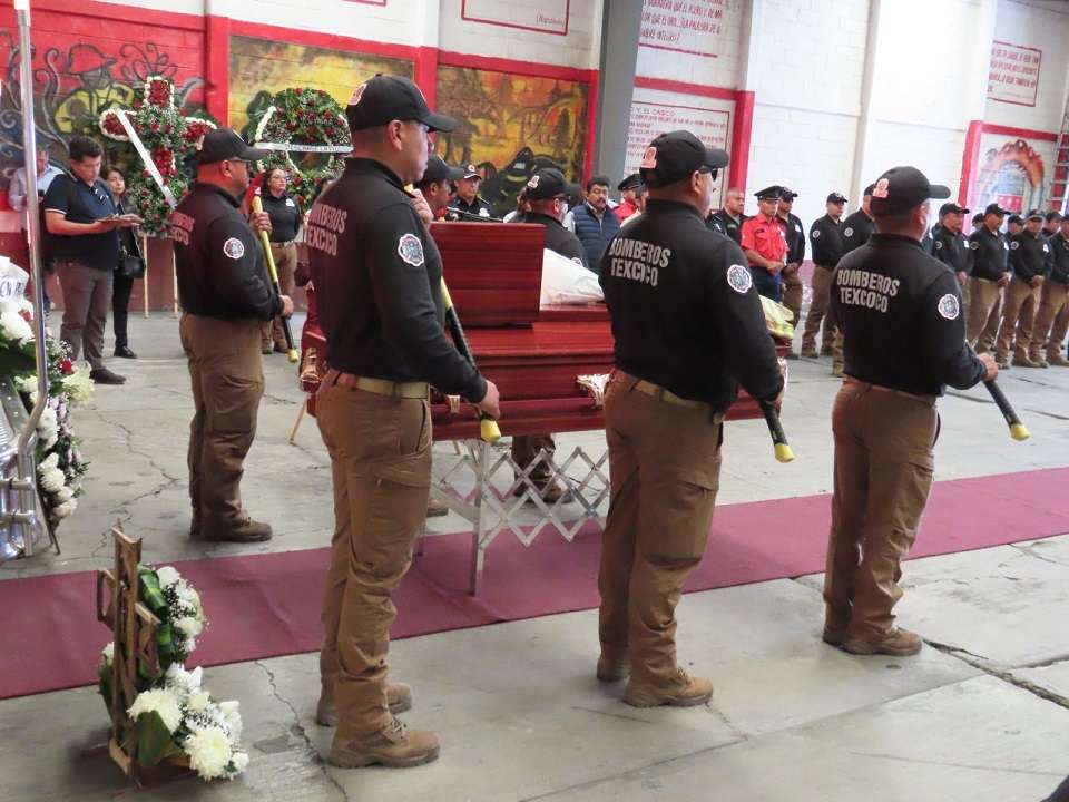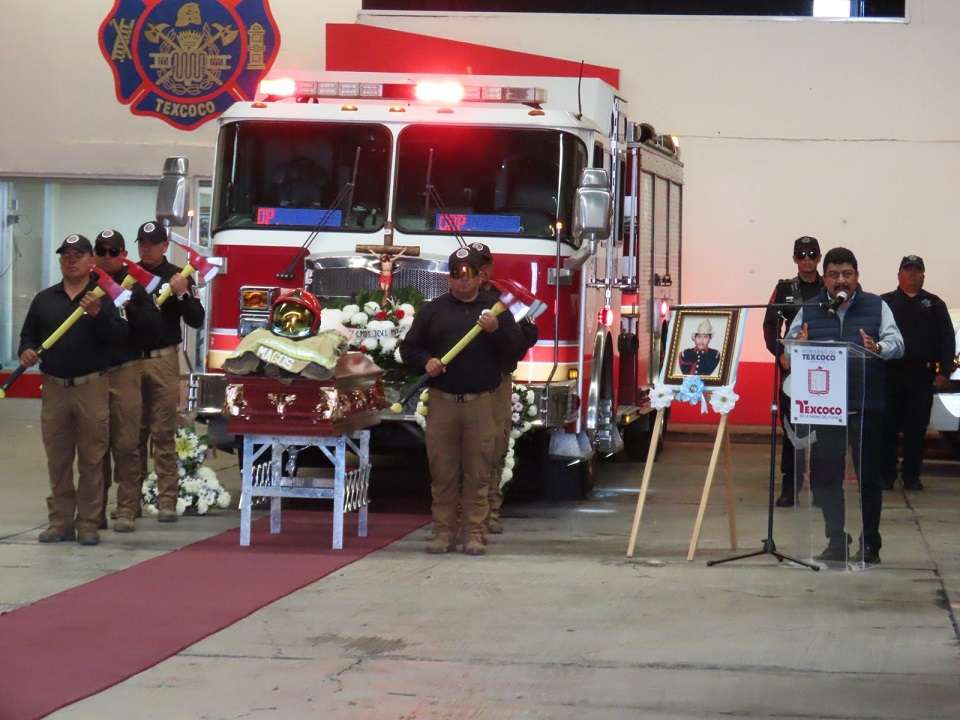 Respectivamente, en una emotiva ceremonia marcada por el triste ulular de las sirenas, y el pase de lista de presente por todos sus compañeros, el presidente municipal de Texcoco, reconoció el trabajo que realizó el Comandante Joel Magos Campero, fallecido a los 51 años, de los que 36 dedicó a desempeñar su trabajo como bombero en este municipio.