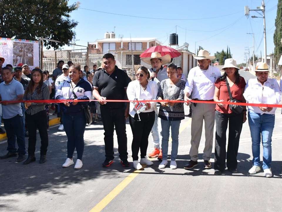 Seguidamente, las autoridades del Ayuntamiento, continuaron la gira de trabajo de este sábado por la población del Palomar Maquixco, donde el alcalde Teotihuacano realizó la entrega e inauguración oficial de la obra de pavimentación asfáltica y construcción de guarniciones y banquetas , trabajos de acciones en la calle Los Reyes, atestiguando autoridades auxiliares y vecinos,