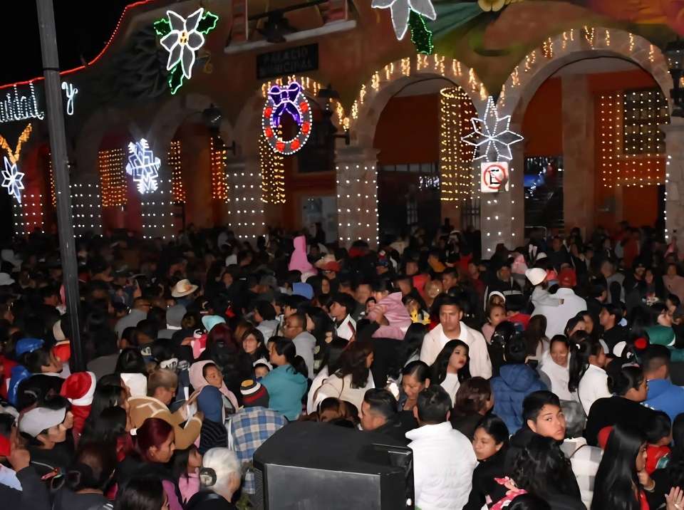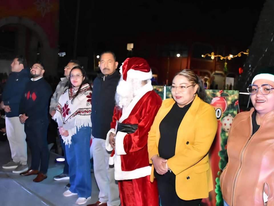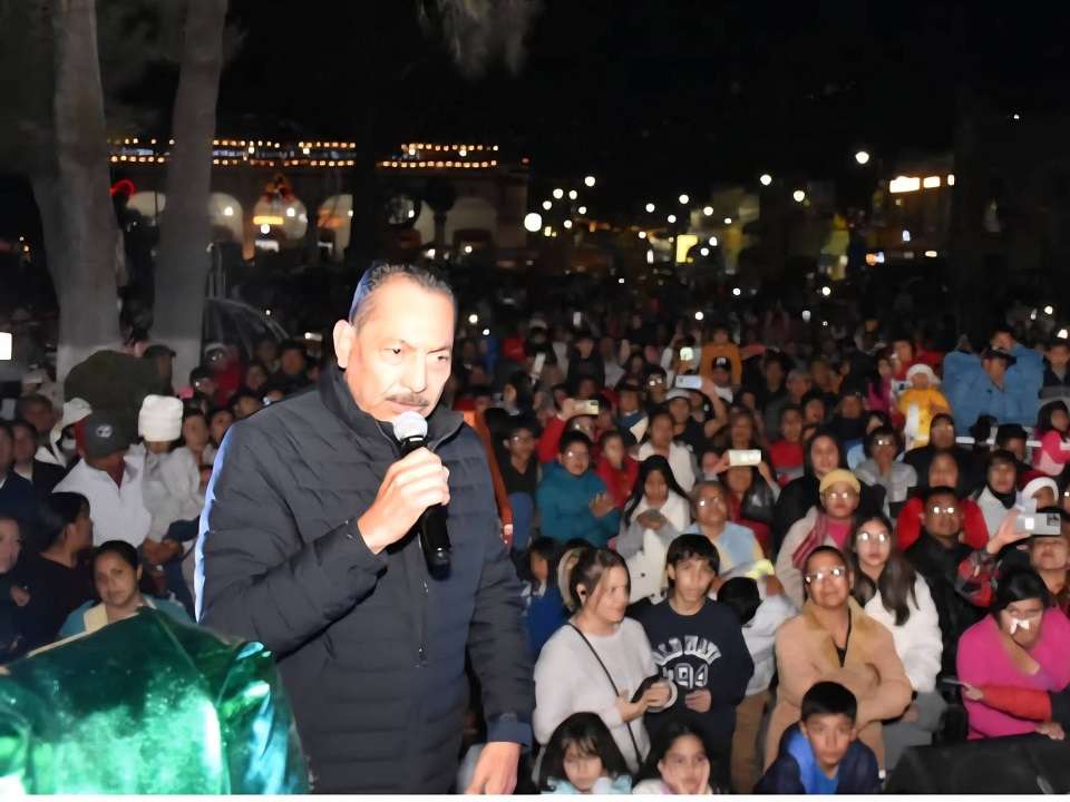 El presidente municipal Mario Paredes de la Torre, acompañado del Cuerpo Edilicio, Gabinete de Gobierno, entre luces de colores e ilusiones a flor de piel de chicos y grandes, se inició las fiestas invernales en medio de la alegría, el amor familiar y la felicidad de convivir con la familia, en la explanada central frente al Ayuntamiento.